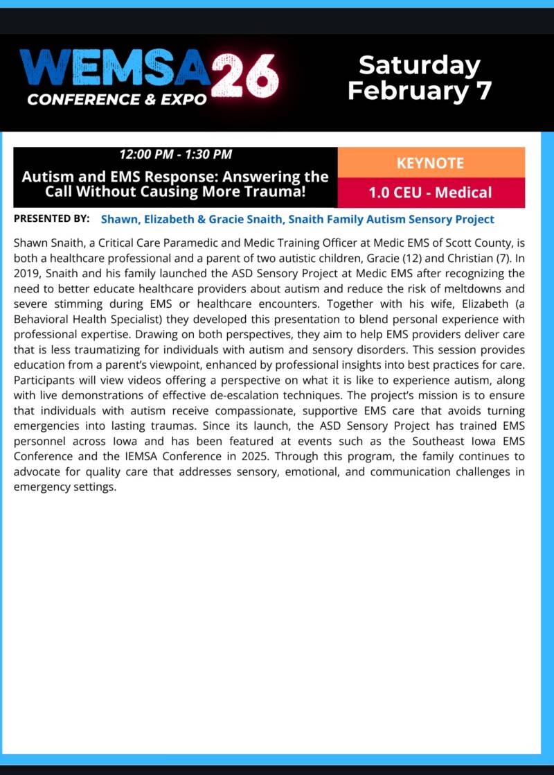 We are pleased to announce our participation in two conferences. First, we look forward to attending IEMSA in Des Moines, Iowa, in a few weeks. Additionally, we are honored to be the Keynote Speaker at the Wisconsin EMS Conference (WEMSA). We are thrilled to expand our reach into Wisconsin and share our passion with others. Join us at IEMSA in November 2025 or WEMSA in February 2026.